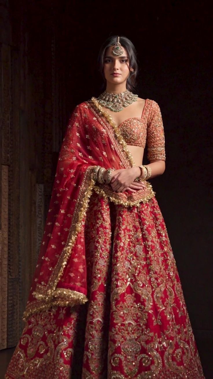 Intricate hand-embroidered bridal lehengas.